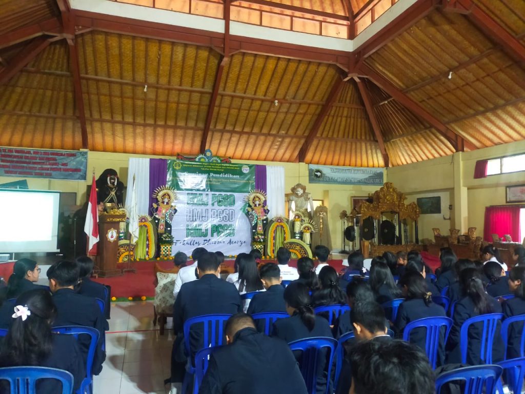 Bertempat di Guru Kula Bangli sedang berlangsung Seminar Pendidikan dengan tema Kiat Sukses Pendidik Sekolah Dasar Yang Berkompeten Berdedikasi yang dilaksanakan oleh HMJ Pendidikan Guru Sekolah Dasar. Kegiatan ini dibuka oleh Wakil Dekan 1 Fakultas Dharma Acarya Dr. Dra. Ni Nyoman Perni, M.Pd. Dengan menghadirkan 2 narasumber yang berasal dari Kepala Sekolah yang merupakan Guru Berprestasi dan Guru Penggerak dari SD Negeri 6 Dauh Puri dan SD Negeri 1 Selat Susut. Turut mendampingi Wakil Dekan III Dr. I Made Wirahadi Kusuma, SH., M.Pd.H, Ketua Jurusan PGSD Ni Nyoman Mariani, S.Pd.,M.Pd, Sekretaris Ni Nyoman Tri Wahyuni, S.Pd.H.,M.Pd. dan Dosen Homebase.