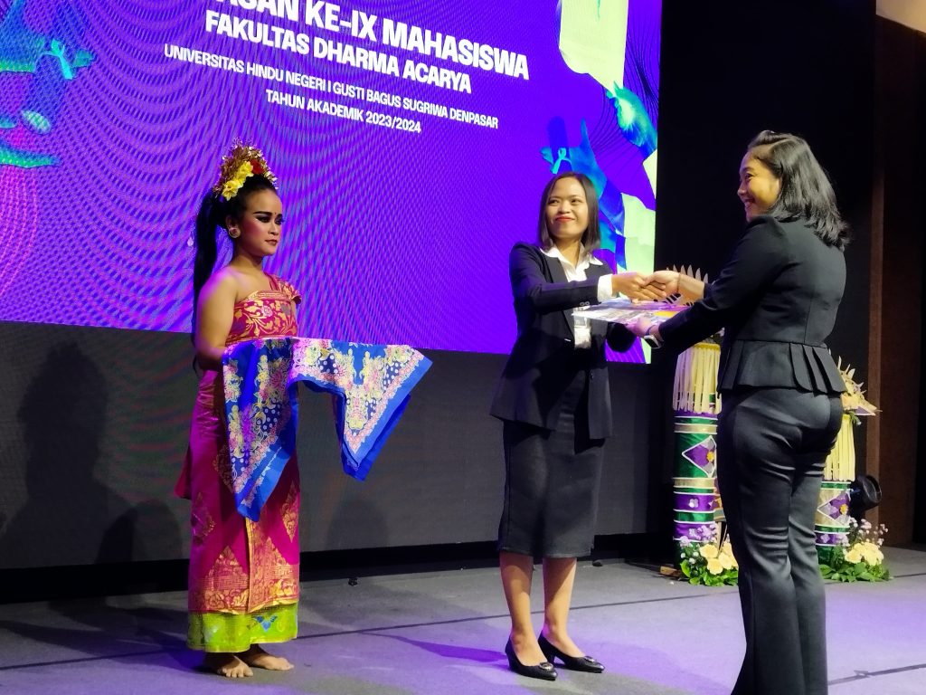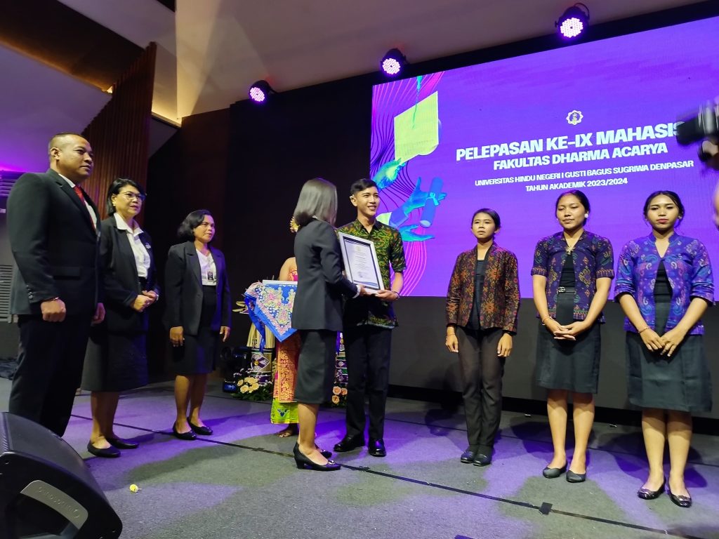 Selasa, 6 Agustus 2024, bertempat di Revirside Convention Center Padangsambian, Denbar, Dekan Fakultas Dharma Acarya melepas sebanyak 290 mahasiswa dari 5 prodi pada Fakultas Dharma Acarya. Lulusan terbaik di raih oleh A.A. Alit Putra Baskara dengan jumlah nilai 582, IP 3,99 Predikat Dengan Pujian. Turut hadir para Kejur, Sekjur beserta jajaran Fakultas Dharma Acarya.