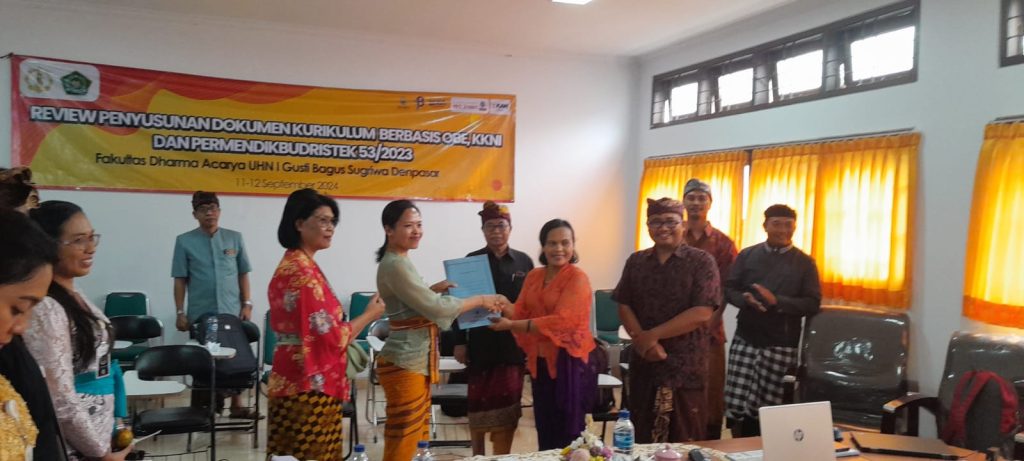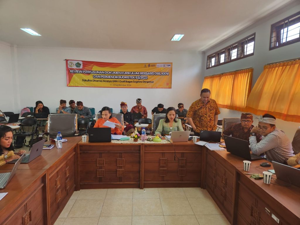 Kegiatan ini diselenggarakan selama dua hari pada 11 dan 12 September 2024, dengan narasumber Prof. Dr. Fajri Ismail, M.Pd.I. Kegiatan review dokumen kurikulum, yang dibuka Dekan FDA, Dr. Ni Komang Sutriyanti, S.Ag., M.Pd.H. ini diikuti 33 peserta, mulai dari Jajaran Dekanat, LPM, dan Tim Pengembang Kurikulum Prodi Fakultas Dharma Acarya dengan 3 orang panitia pelaksana kegiatan. Pada kesempatan itu Dekan FDA menyampaikan terimakasih kepada Prof. Dr. Fajri Ismail, M.Pd.I. atas kesediannya sebagai narasumber untuk porses review kurikulum. Selama kegiatan proses review kurikulum dilakukan secara bertahap pada lima jurusan dan Prodi PPG di Fakultas Dharma Acarya (nik).