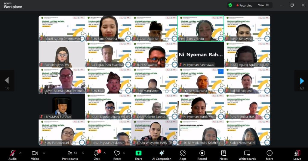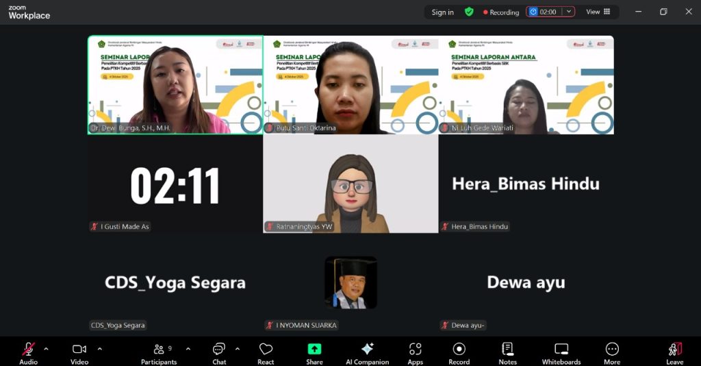 Denpasar, 4 Oktober 2025– Empat dosen dari Program Studi Pendidikan Bahasa Inggris (PBI), Universitas Hindu Negeri I Gusti Bagus Sugriwa Denpasar, turut berpartisipasi dalam Seminar Laporan Antara Penelitian Kompetitif Berbasis SBK Tahun 2025 yang diselenggarakan oleh Direktorat Jenderal Bimbingan Masyarakat Hindu (Dirjen Bimas Hindu), Kementerian Agama RI. Seminar ini menjadi ajang evaluasi dan pemaparan hasil sementara dari penelitian yang telah mencapai 70% progres, khususnya pada skema penelitian kolaborasi internasional yang menjadi fokus pengembangan riset berbasis Sains, Budaya, dan Kearifan Lokal (SBK).