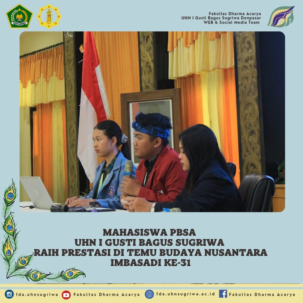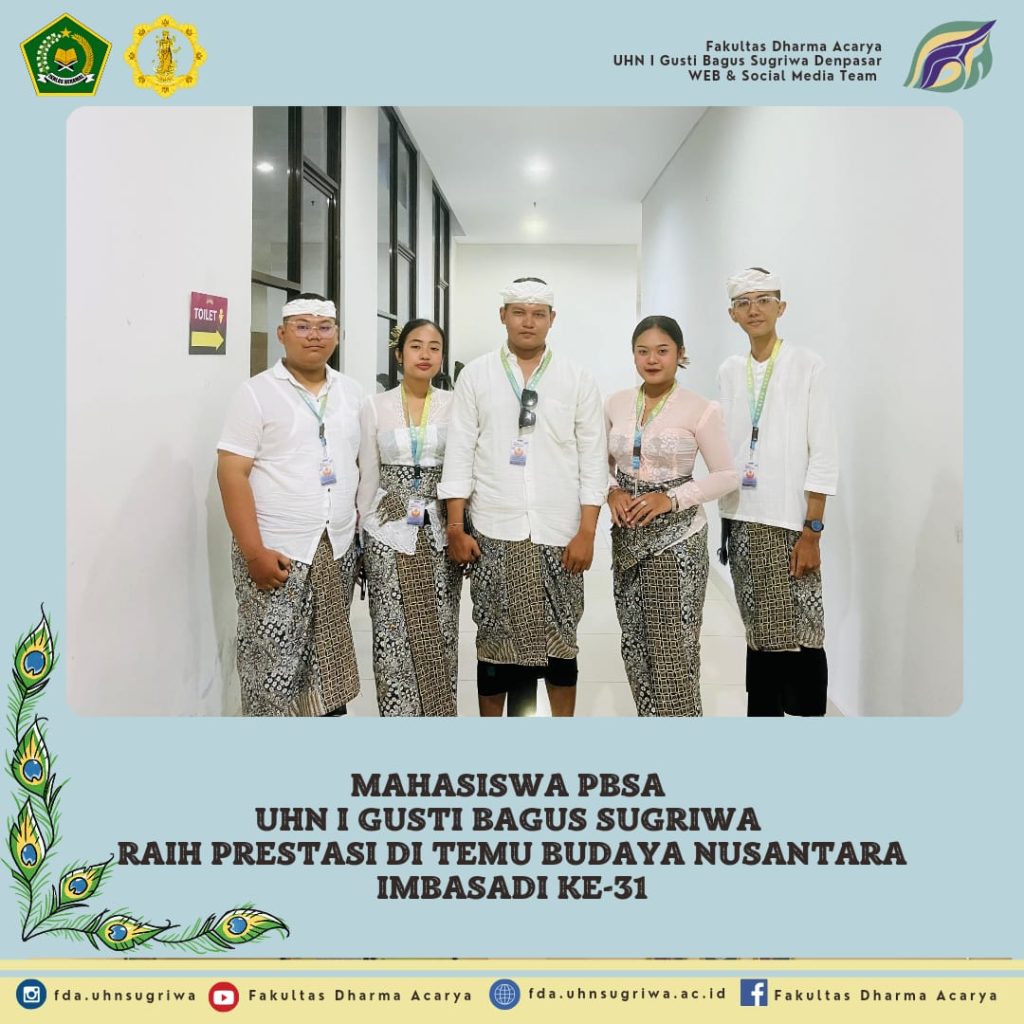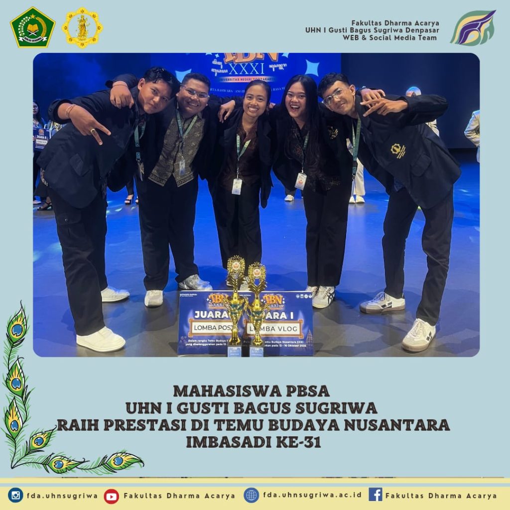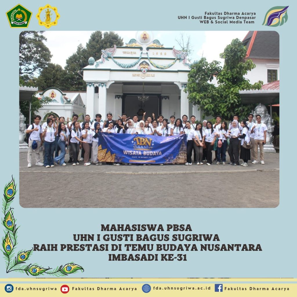 Yogyakarta, 16 Oktober 2025 — Mahasiswa Pendidikan Bahasa dan Sastra Agama (PBSA) Universitas Hindu Negeri (UHN) I Gusti Bagus Sugriwa Denpasar berhasil menorehkan prestasi membanggakan dalam ajang bergengsi “Temu Budaya Nusantara Ikatan Mahasiswa Bahasa dan Sastra Daerah Indonesia (IMBASADI) ke-31” yang digelar di Universitas Negeri Yogyakarta (UNY) pada 13–16 Oktober 2025.