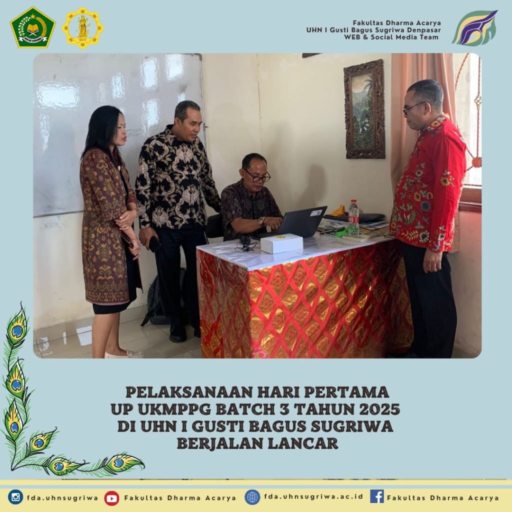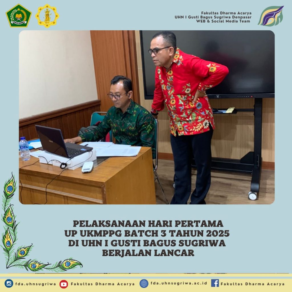 “Kami mengapresiasi semangat para pengawas, penyelia, serta semua tim panitia yang bekerja maksimal hari ini. Kepada para peserta, kami sampaikan semangat—kerjakan ujian dengan jujur, fokus, dan percaya diri. Semoga seluruh proses ini membawa hasil terbaik,” ujar Dr. Ni Komang Sutriyanti, S.Ag., M.Pd.H, Dekan Fakultas Dharma Acarya UHN I Gusti Bagus Sugriwa Denpasar. Pelaksanaan UKMPPG Batch 3 ini diharapkan dapat berjalan lancar hingga hari terakhir, sebagai bagian dari komitmen UHN Denpasar dalam mendukung peningkatan mutu dan profesionalisme guru di Indonesia.