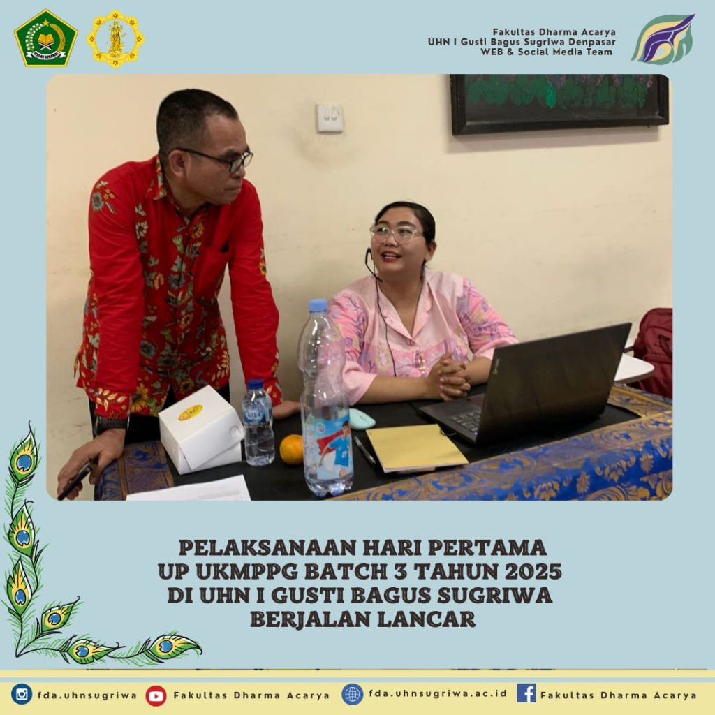 Denpasar, 18 Oktober 2025 — Pelaksanaan hari pertama Uji Pengetahuan (UP) UKMPPG Dalam Jabatan Batch 3 Tahun 2025 di Universitas Hindu Negeri (UHN) I Gusti Bagus Sugriwa Denpasar berlangsung lancar dan tertib. Ujian dilaksanakan di Gedung Fakultas Brahma Widya dan diikuti oleh total 800 peserta dari berbagai LPTK.