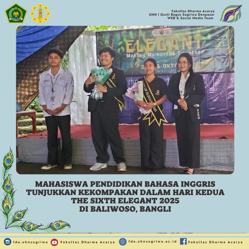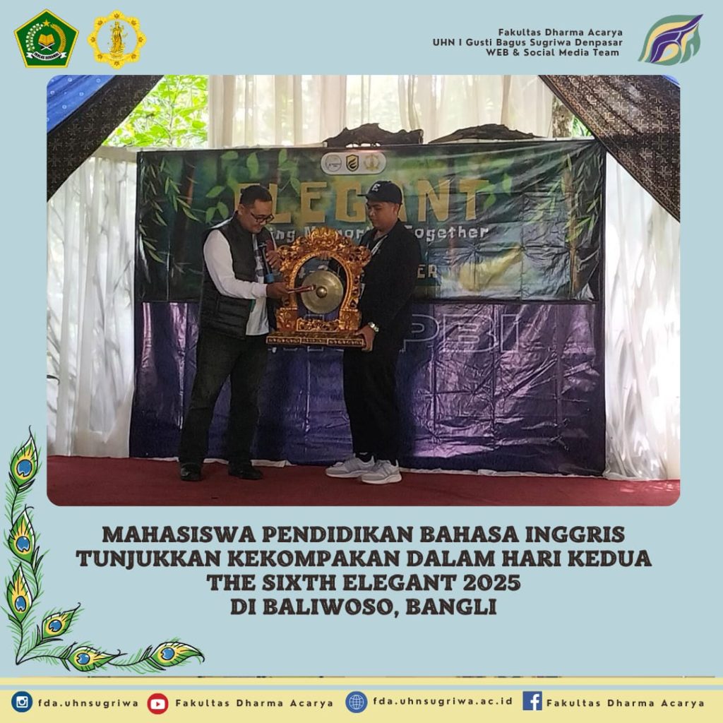 Bangli, 25 Oktober 2025 – Setelah dibuka secara resmi pada 24 Oktober 2025 di Bumi Perkemahan Baliwoso, Bangli, kegiatan The Sixth Elegant 2025 yang diselenggarakan oleh Himpunan Mahasiswa Jurusan Pendidikan Bahasa Inggris, Universitas Hindu Negeri I Gusti Bagus Sugriwa Denpasar, berlanjut dengan penuh semangat pada hari kedua. Kegiatan dimulai dengan Senam Gen Z yang diikuti dengan antusias oleh seluruh peserta. Suasana semakin semarak ketika berbagai games seru digelar, menciptakan keakraban dan kebersamaan di antara peserta.