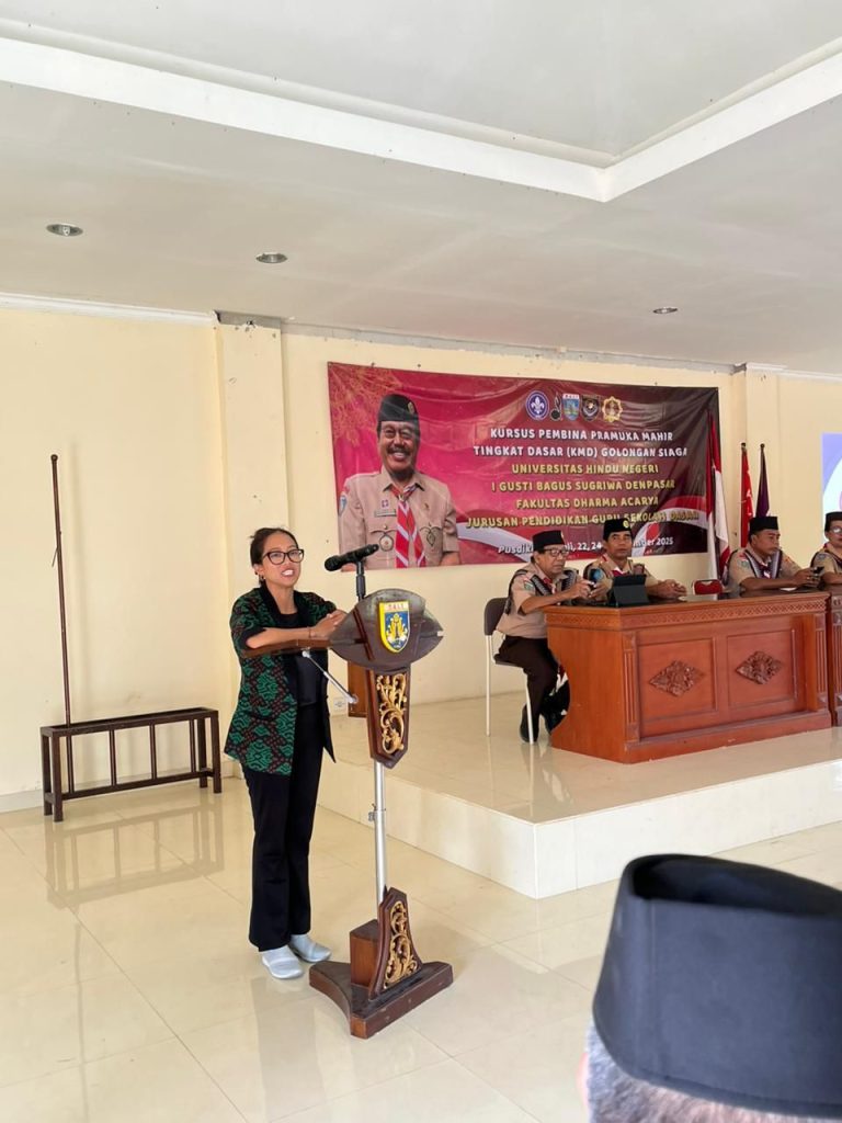 Para peserta merupakan anggota Racana Abimanyu–Sitisundari UHN IGBS Denpasar yang mendapatkan kesempatan untuk memperkuat kompetensi kepemimpinan, pedagogik kepramukaan, serta keterampilan dasar sebagai calon Pembina Pramuka Siaga. Selama pelatihan, mahasiswa menerima materi intensif mulai dari dasar-dasar kepramukaan, manajemen perindukan siaga, teknik permainan edukatif, hingga praktik membina di lapangan. Kegiatan KMD ini menjadi bagian penting dalam pengembangan kompetensi mahasiswa PGSD, khususnya untuk mendukung profesionalisme sebagai calon guru sekolah dasar yang mampu memfasilitasi kegiatan ekstrakurikuler kepramukaan di satuan pendidikan.