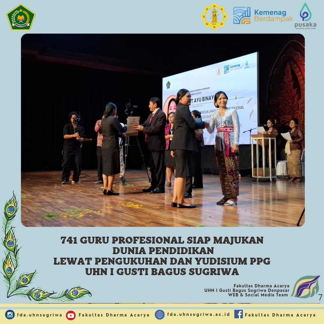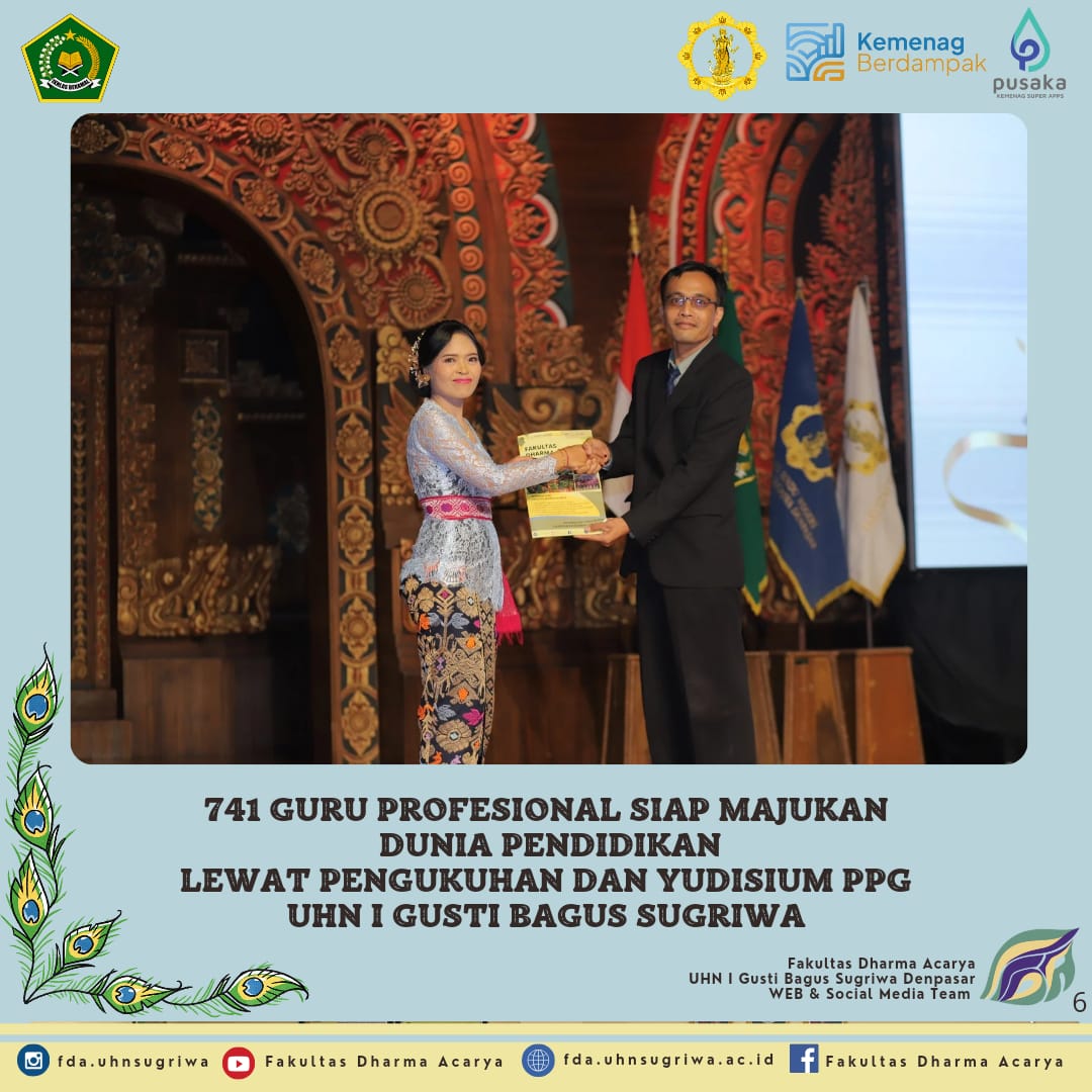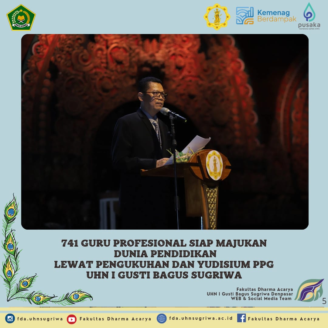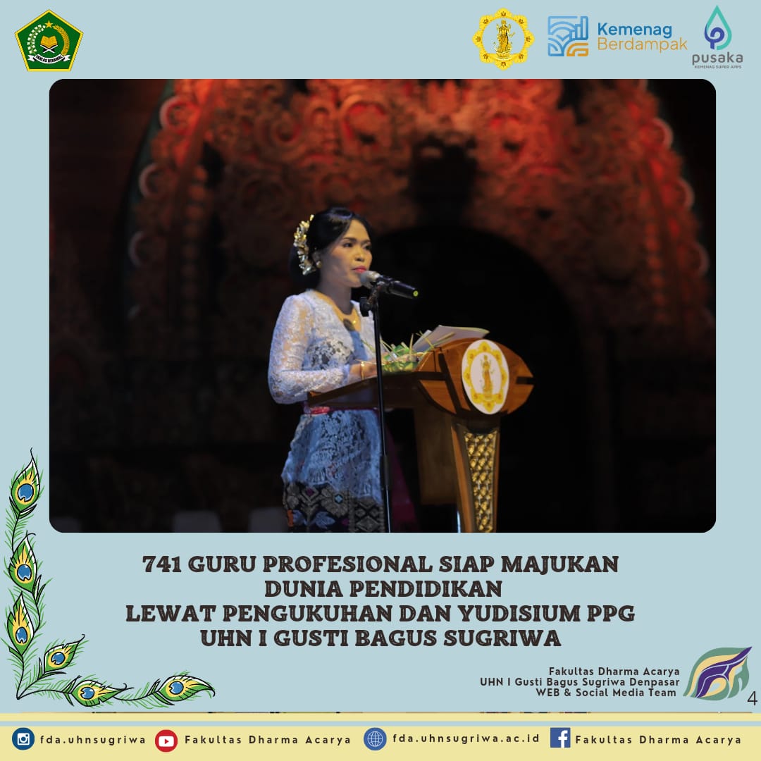 Denpasar, Bali (UHN Sugriwa) – Universitas Hindu Negeri (UHN) I Gusti Bagus Sugriwa Denpasar melaksanakan Yudisium dan Pengukuhan Guru Profesional Pendidikan Profesi Guru (PPG) Dalam Jabatan Guru Pendidikan Agama Hindu Batch III Tahun 2025 LPTK, Minggu (28/12/2025) di gedung Dharma Negara Alaya Denpasar. Yudisium dan pengukuhan diikuti total 741 peserta yang telah lulus PPG. Sejumlah 425 peserta mengikuti kegiatan dengan hadir langsung atau secara luring, sebagian lagi secara daring.